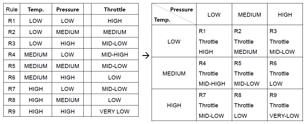 FIE(Fuzzy Inference Engine) 을 거쳐 특정 입력값에 대한 퍼지 출력을 보낸다. 여기서 FIE는 KBS(Knowledge Base System)을 기반으로 분석을 시행한다. FIE는 다양한 Rule 을 토대로 결과값을 추론하는 역할을 하고 결정을 내린다.