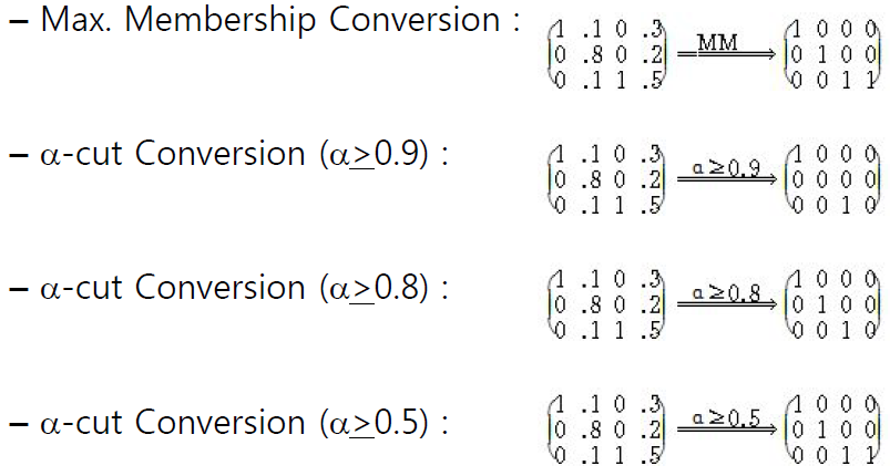 이러한 Fuzzy c-Partition은 conversion을 통해 crisp c-Partition으로 변환된다.