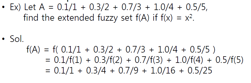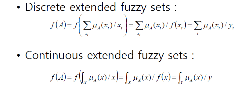 fuzzy set A의 도메인은 non-fuzzy function f를 통해 확장될 수 있다. 여기서 f(A)를 extended fuzzy set이라 한다.