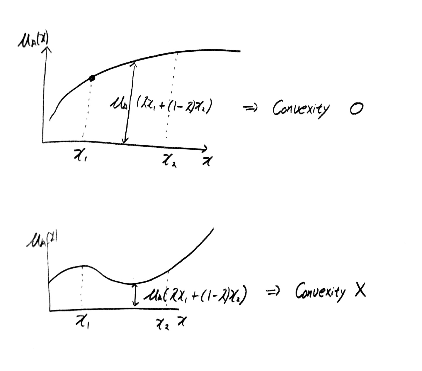 convexity : 모든 x 에 대해 특정 두 x를 골랐을 때 그 값 사이의 모든 x값의 membership function이 선택한 두 x 값의 membership function의 최소값보다 큰 경우. 즉, 볼록하다고 생각하면 된다.