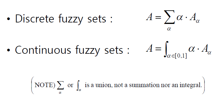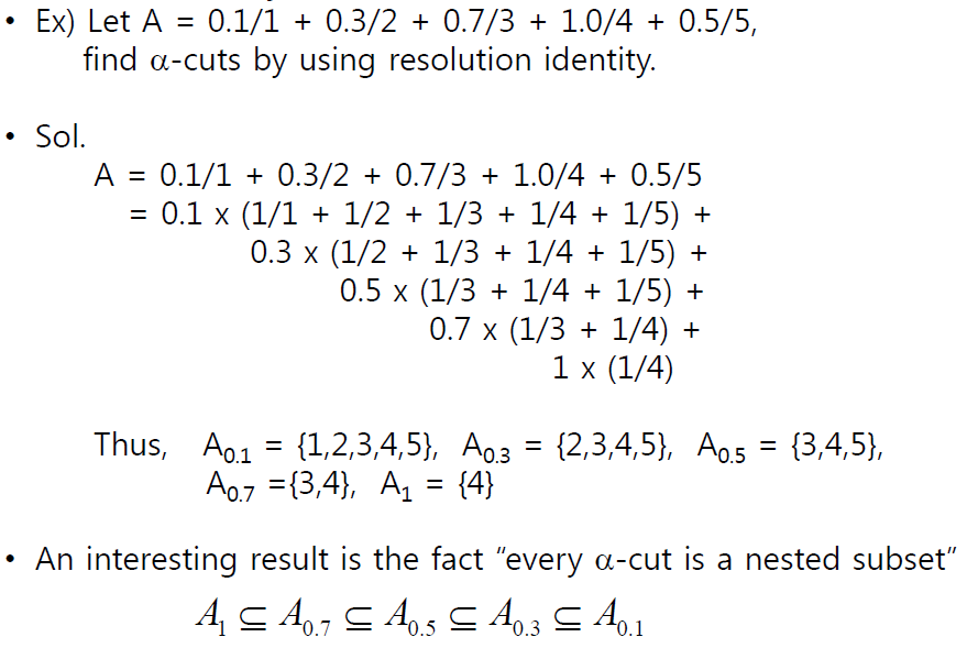 resolution identity : fuzzy set은 유한개 혹은 무한개의 a-cuts로 나누어 질 수 있다.