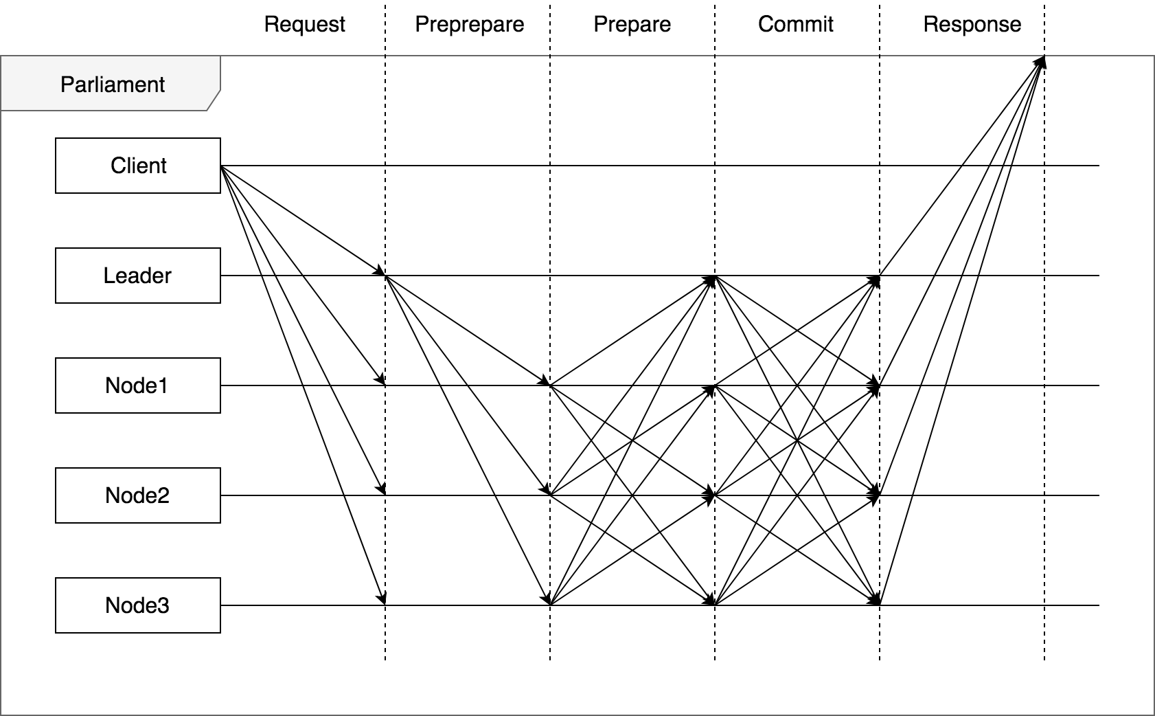 - Parliament: 의회, 즉, 합의에 참여할 노드들의 집합을 의미합니다.